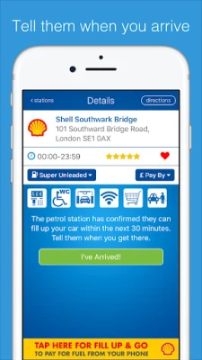 Tells the petrol station you have arrived and they can respond by letting you know how long they will be