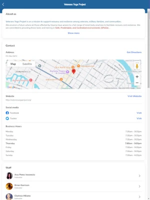 Download this app and access your personalized member portal to sign up for classes, manage your membership, and stay in the know about the events of Veterans Yoga Project