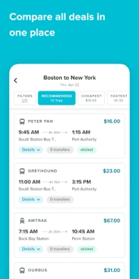 • Compare deals – Sort, filter and compare bus and train trips from hundreds of carriers in one place.